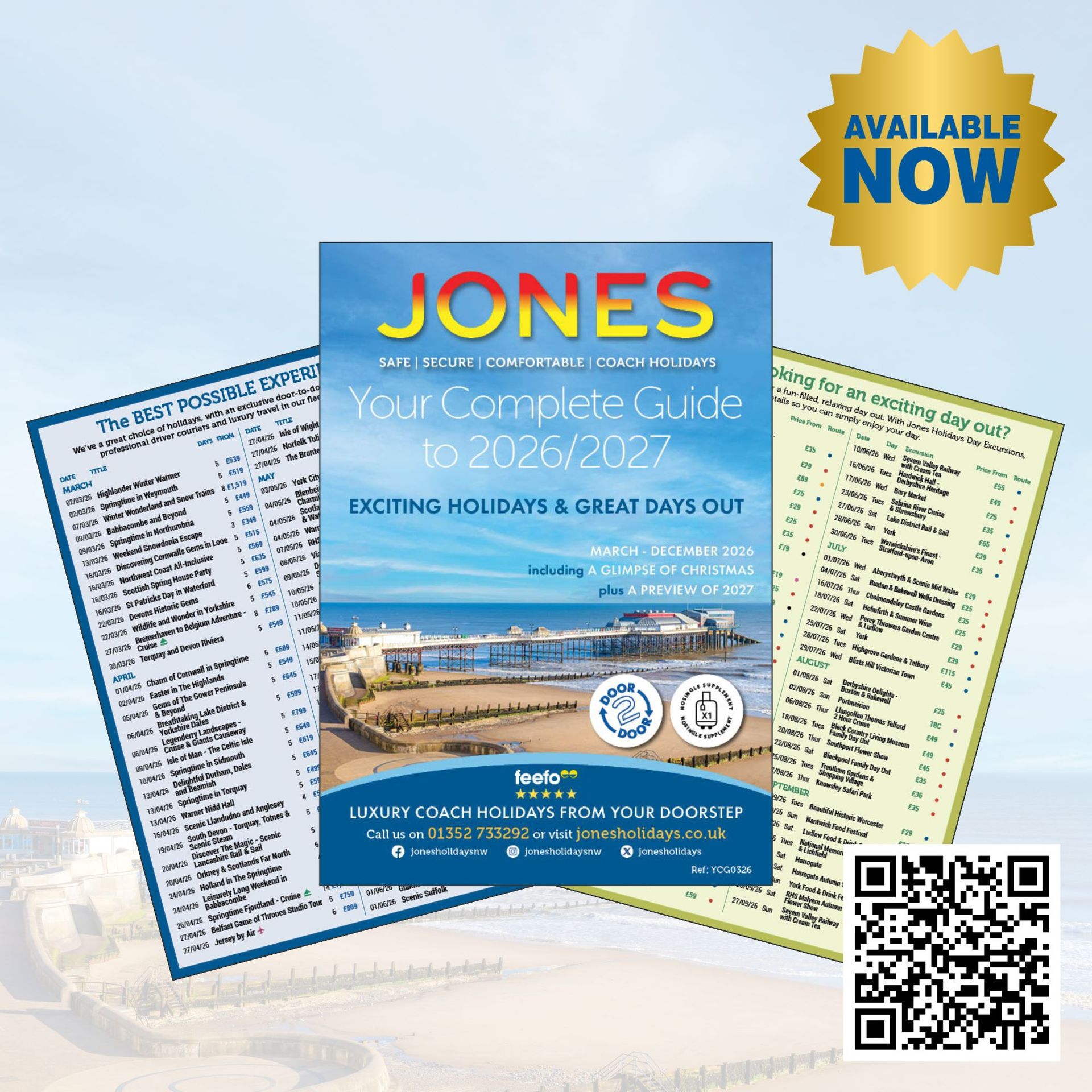We know that planning the perfect holiday or day excursion can feel overwhelming — but with our Jones Holidays Complete Guide to 2026/2027 leaflet, it just got easier! Covering our holidays and excursions from March 2026 through to 2027, you can effortlessly find your ideal getaway.